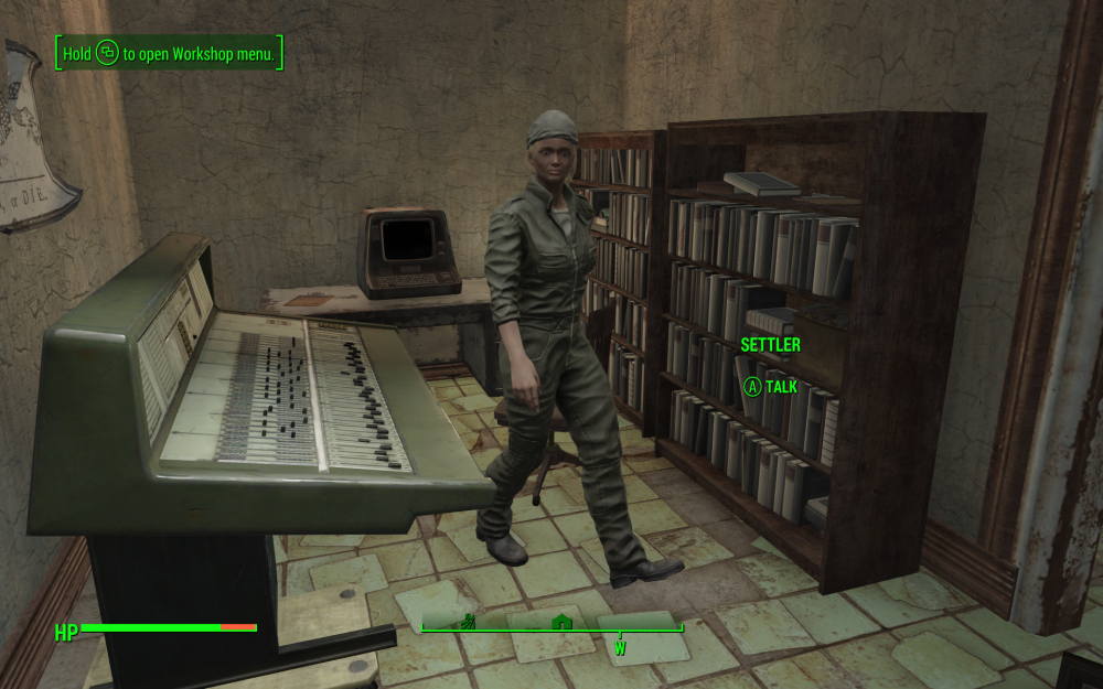 When people climbed to the top of the hill behind Sanctuary, next to Vault 111, they found Ozzie's cabin. It was built around the elevator button down to the Vault, as if the rest of the wooden cabin had been squished on beside it, or as if the button room had been stuck on afterwards.