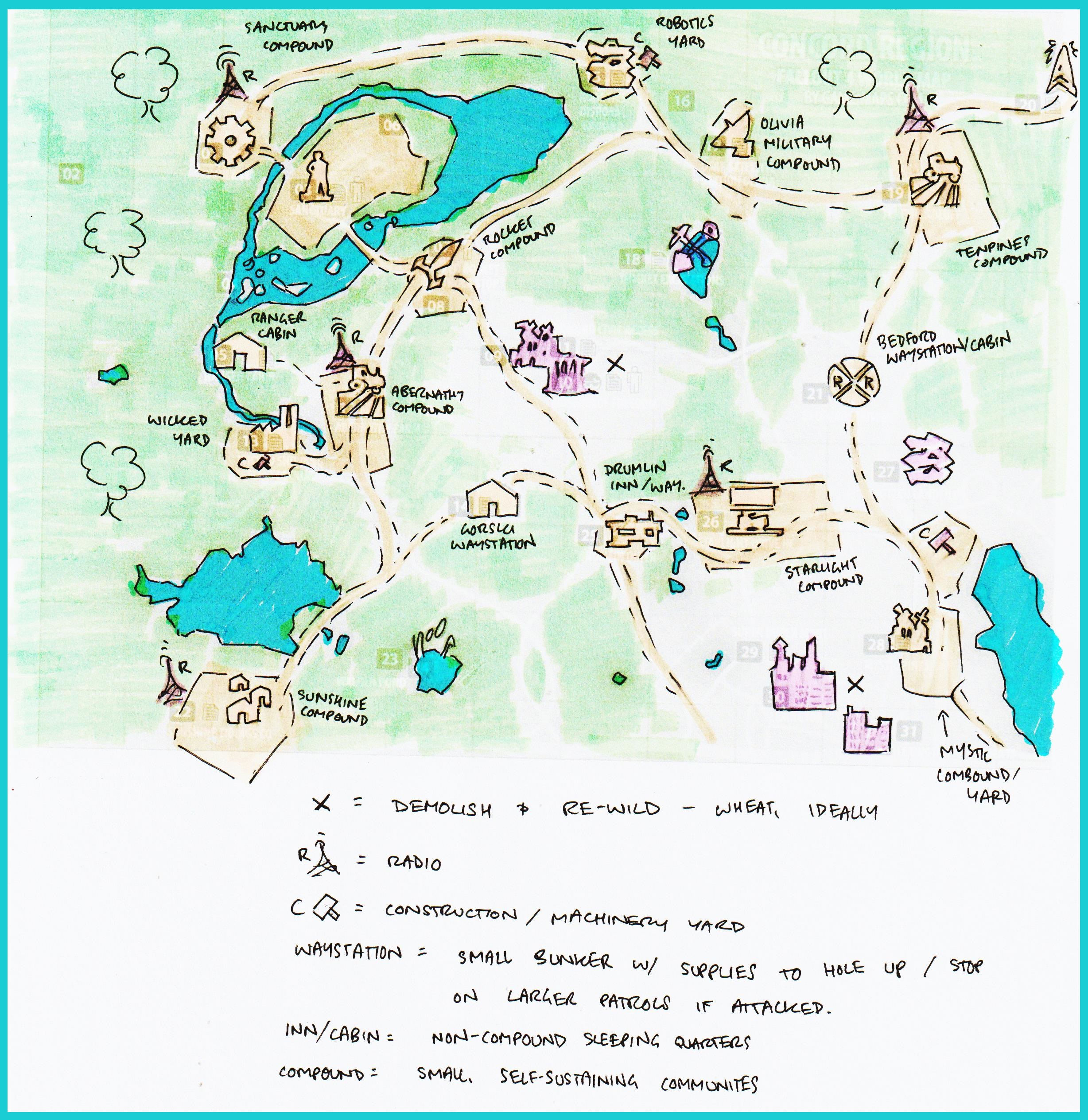 The other necessary thing is population limits at the compounds. It might seem cruel, but it's essentially making sure they always have enough to feed the people there. So if you go to a place, and they're like sorry, we're full, you can say Hey, would that change if I were to help hunt or forage? And sometimes the answer is yes, and you can stay. And sometimes it's no, because food production is limited by what the environment can support as well as what people can make, but that's okay because you can always try at the next one.